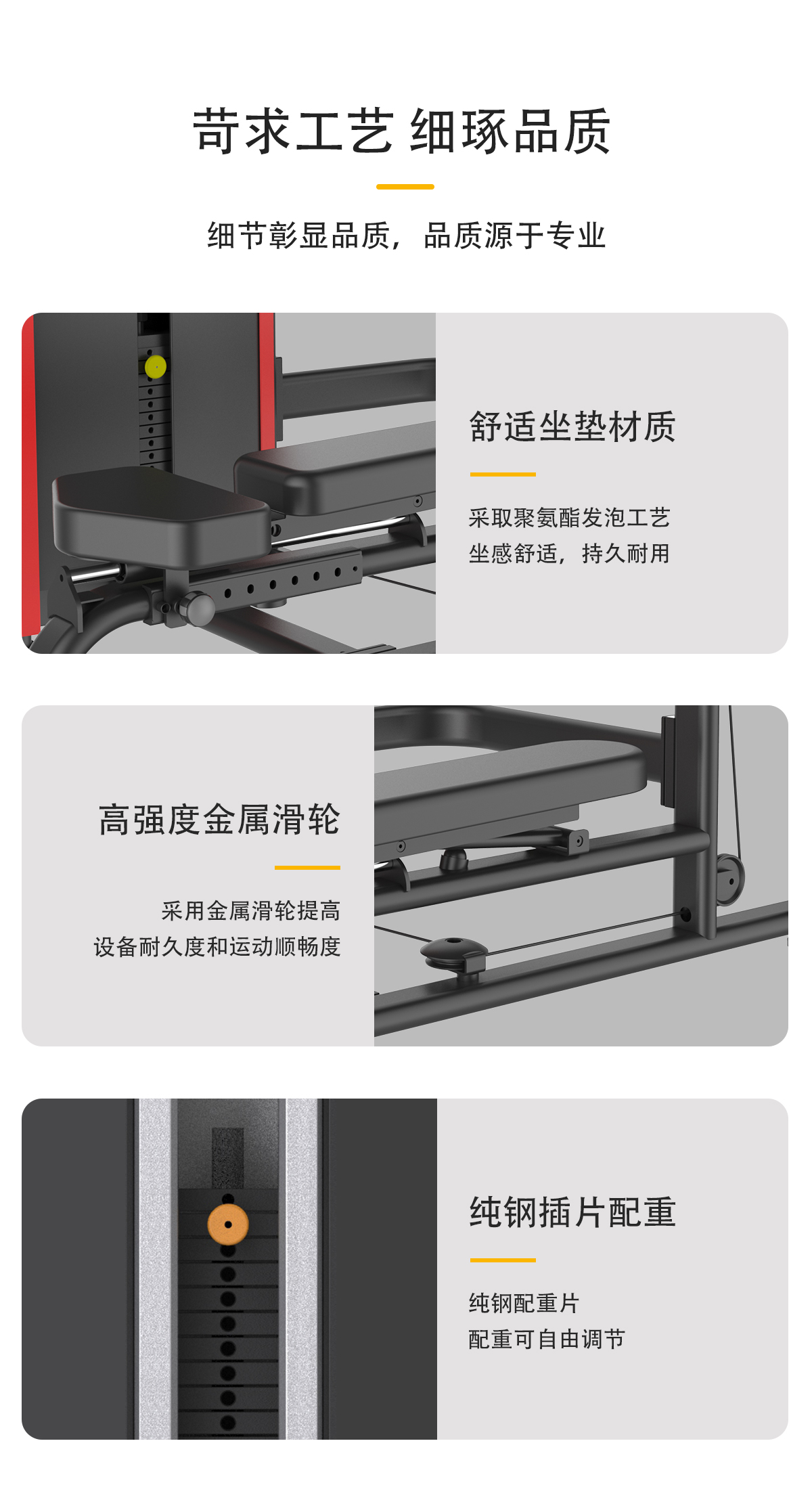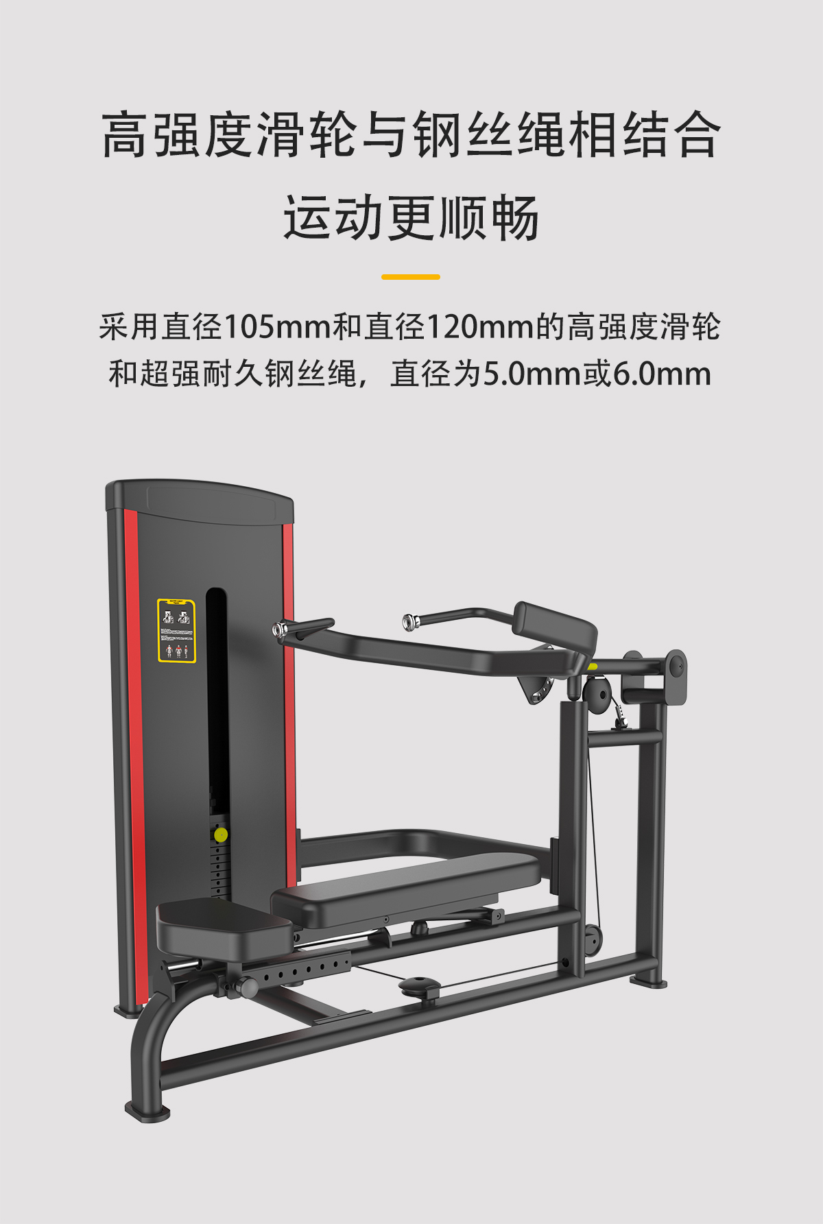 配(pèi)重采用強磁插銷,一次性成型坐墊,高檔優質滑輪及鋼絲繩