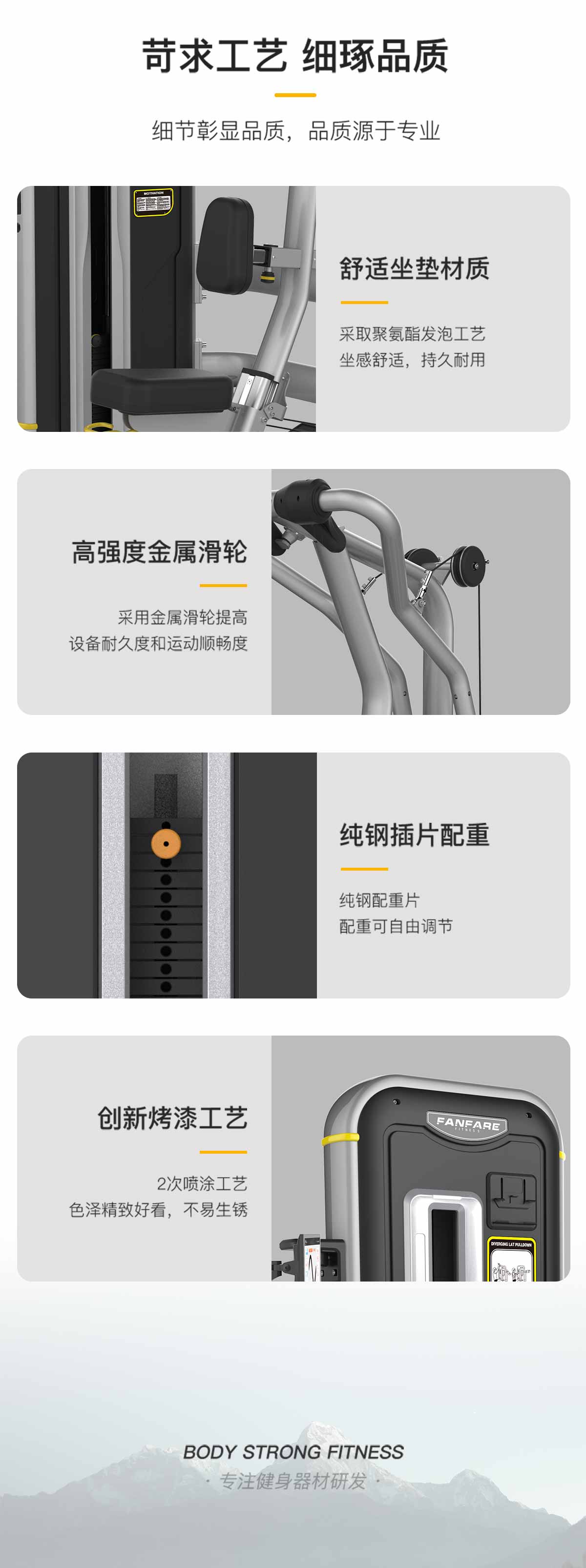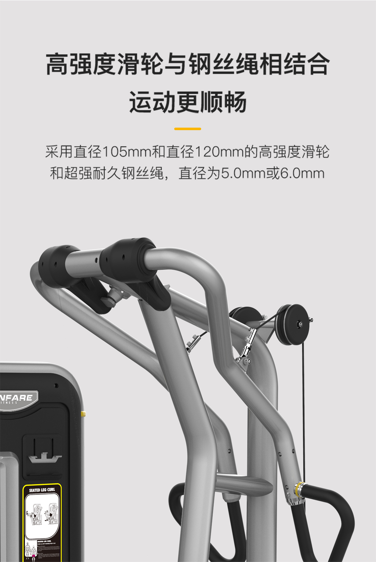 管材(cái)采用橢圓管與圓管,高精密滑輪,超(chāo)耐用鋼絲繩,智能屏幕檢測用戶訓練情況。