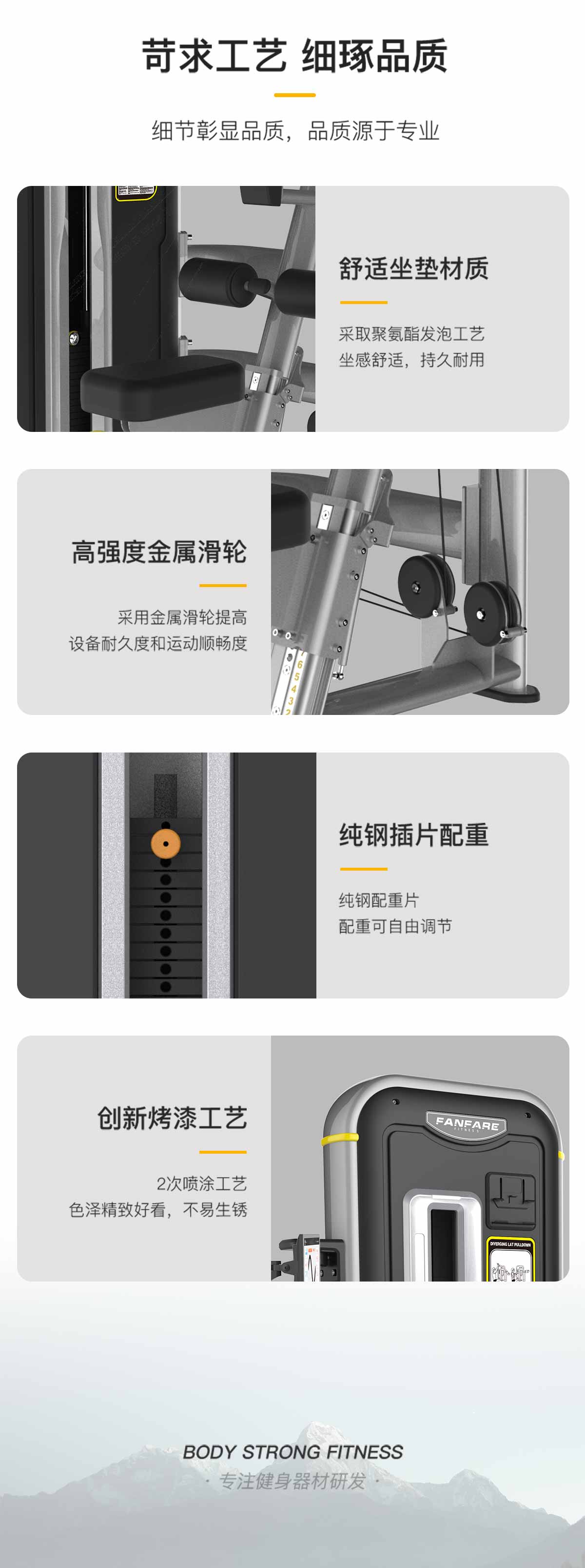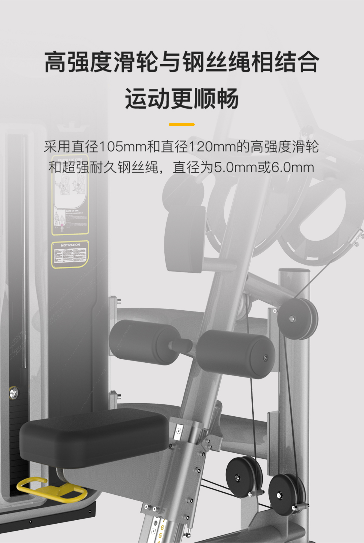 管材采用橢圓管與圓管,高精(jīng)密滑輪(lún),超耐用鋼(gāng)絲(sī)繩,智能屏幕檢測(cè)用戶訓練情況。