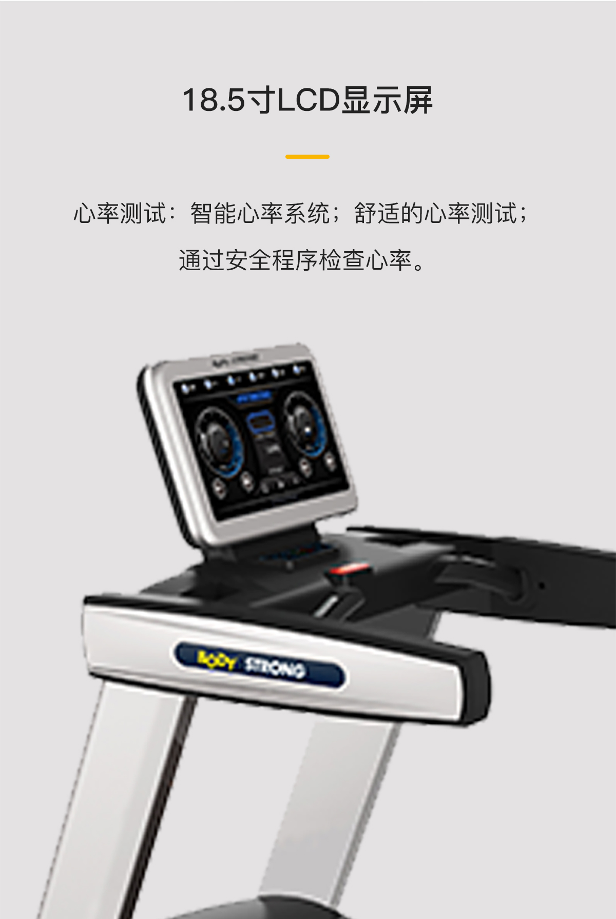 18.5寸LCD顯示麵板,智能心率係統,關鍵時(shí)刻可以按壓中心緊急按鈕。