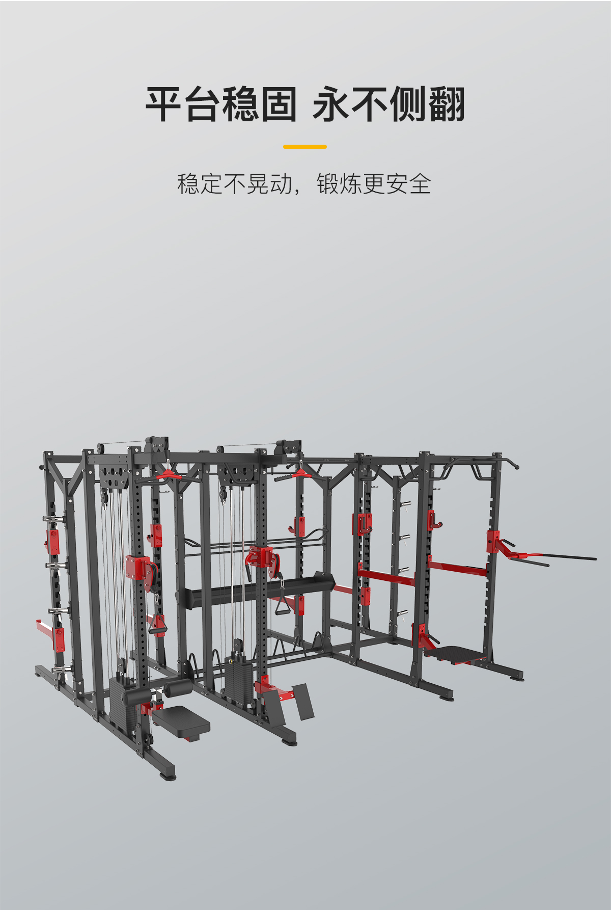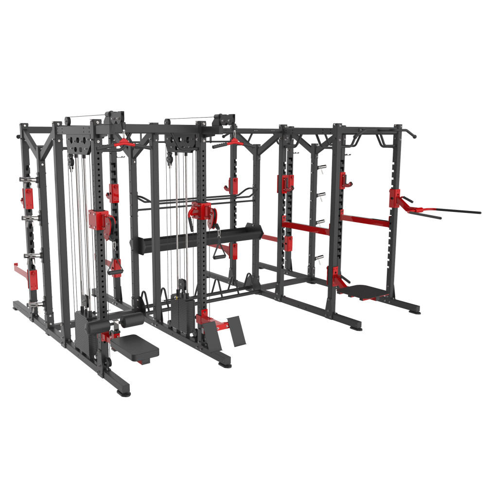 多功能鏈接附件(jiàn)+單杠鏈(liàn)接附件+跳台附件+雙杠附(fù)件+杠鈴片儲存鏈接附件+自由(yóu)儲存鏈接附件+球類儲存鏈接附件+組合單排收納模塊+前開放式深蹲架功能模(mó)塊+多(duō)功能深蹲(dūn)架(jià)功能模塊+小飛鳥架(jià)模塊(kuài)